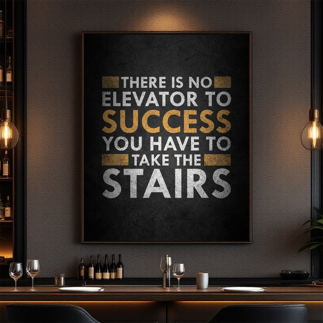 There Is No Elevator to Success – Motivational Wall Art Canvas for Home, Office & Gym