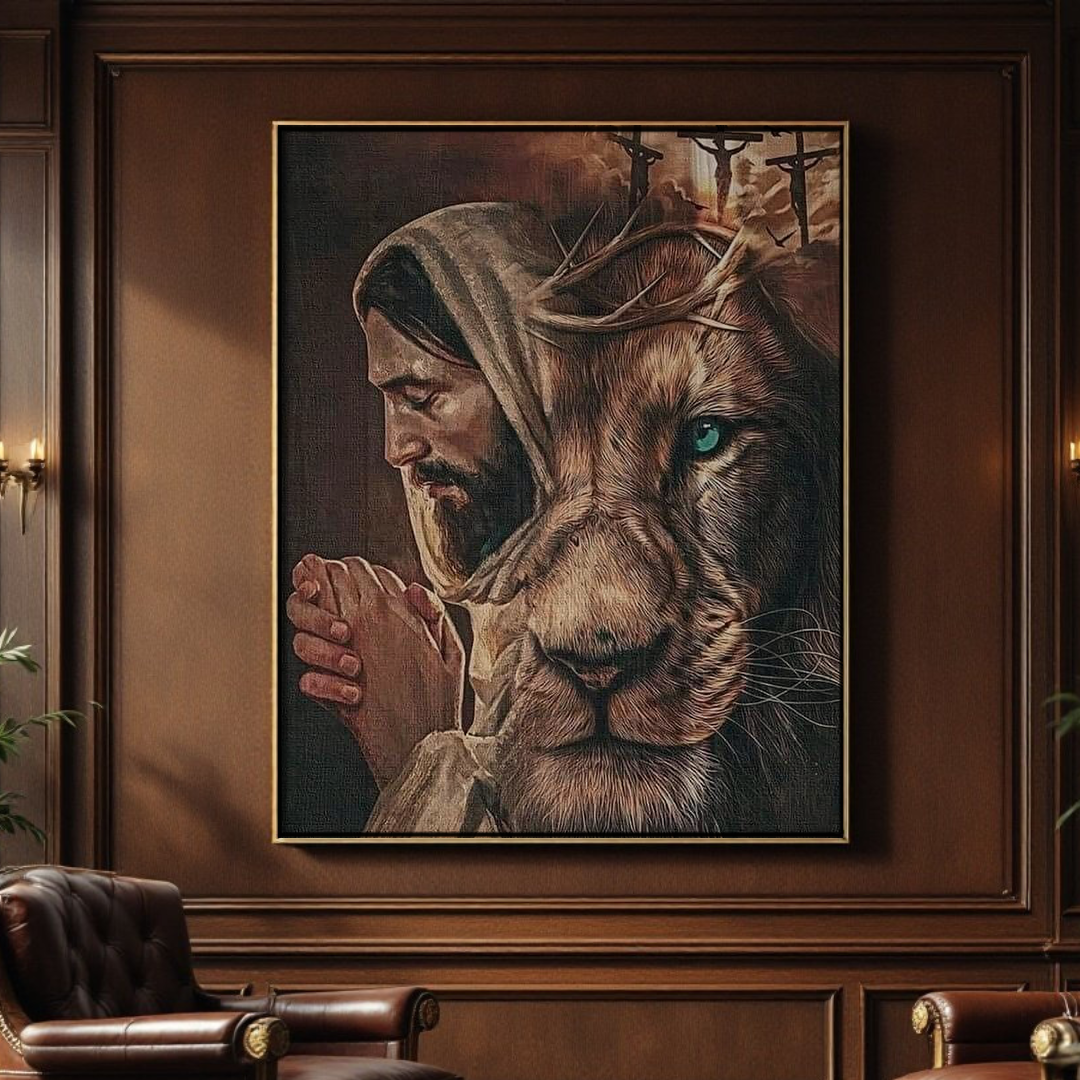 Jesus & Lion Canvas Art – Faith and Power in One Stunning Print