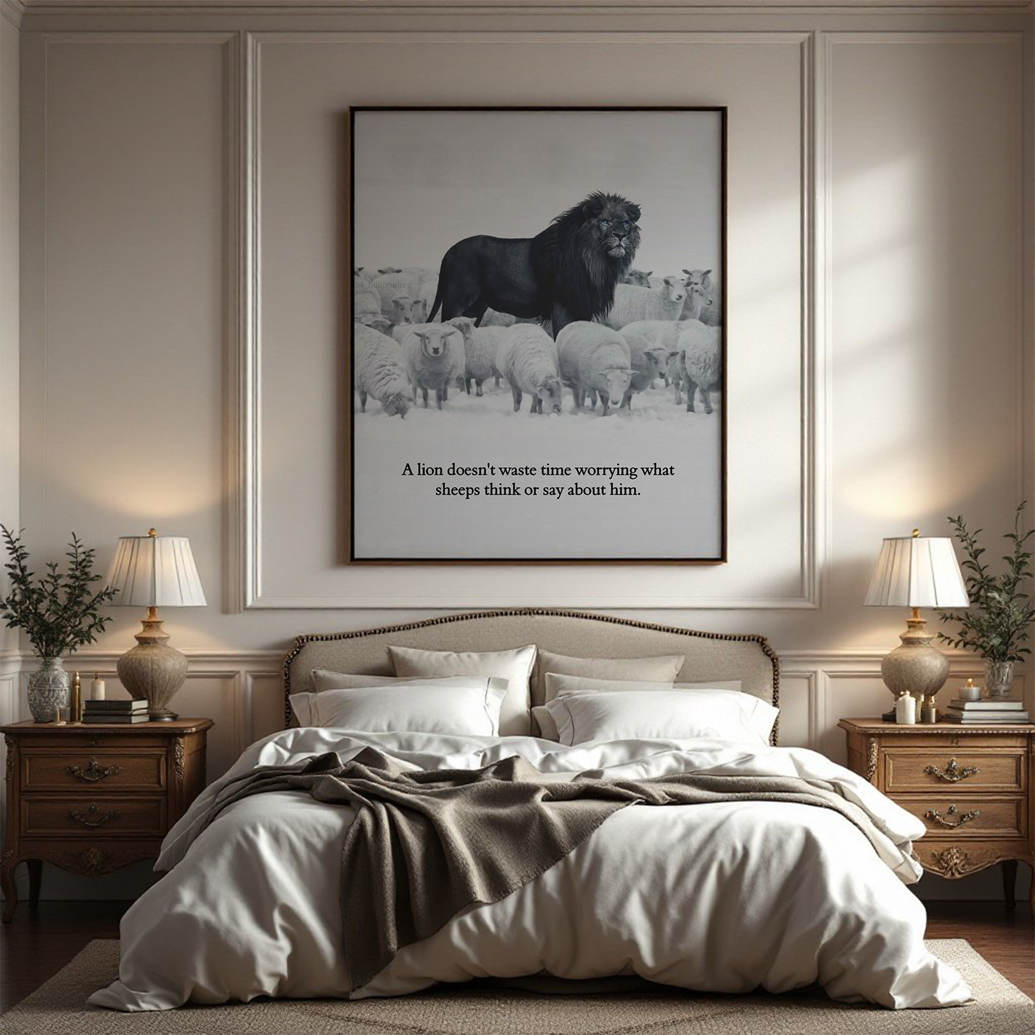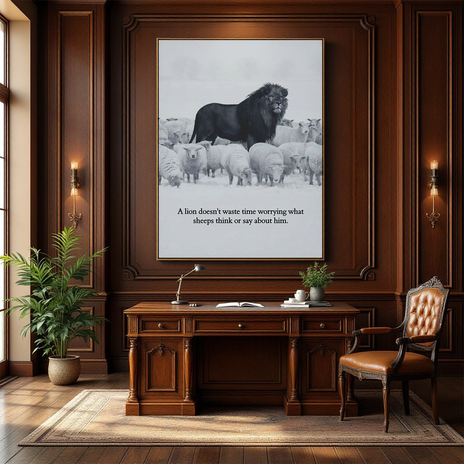 Add this "A Lion Doesn't Waste Time Worrying About What Sheep Think" Motivational Wall Art to your collection today and let its powerful message inspire you to focus on your goals and ignore the opinions of others.