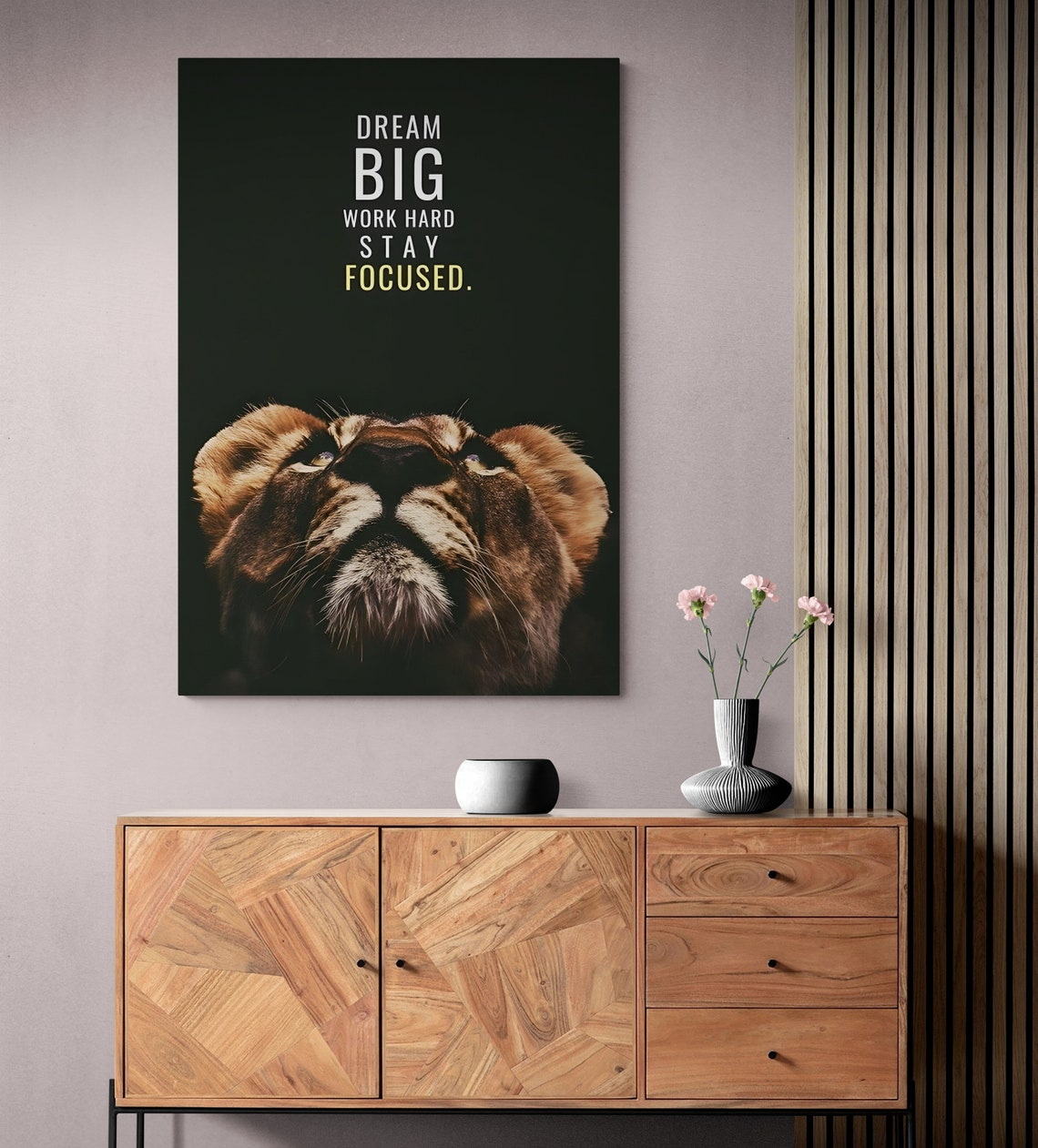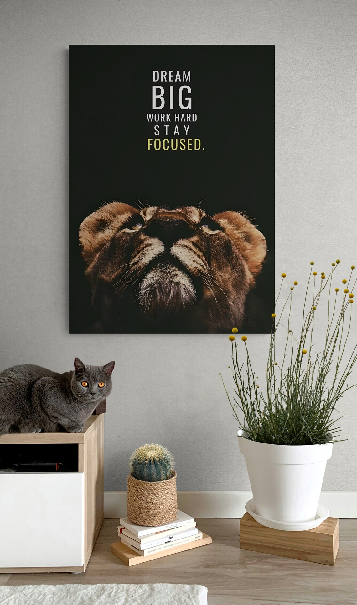 Dream Big Work Hard Stay Focus Lion Strength Canvas Prints – Unleash Your Inner Strength!