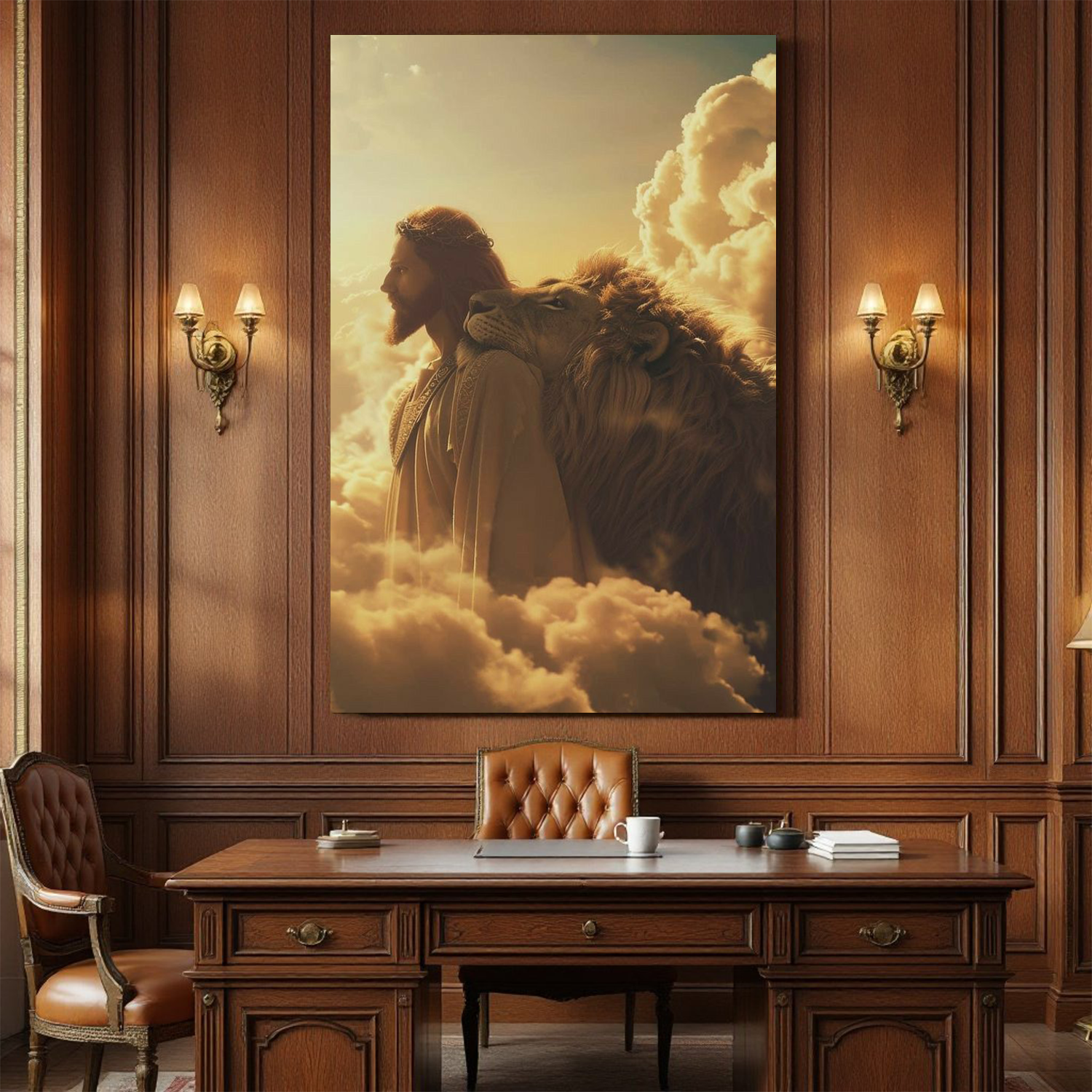 Jesus and Lion Canvas The King of Kings Meets the King of Beasts