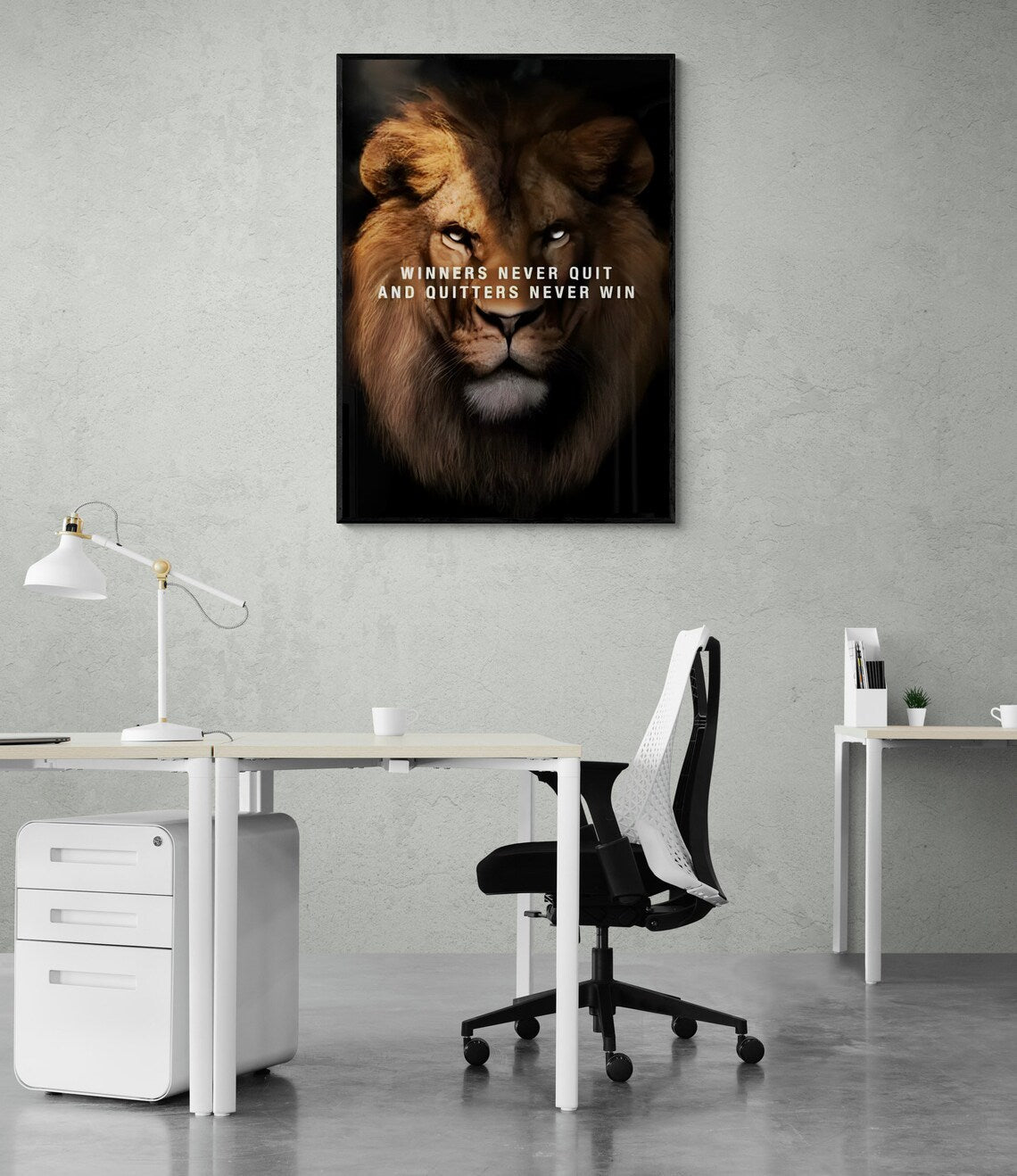 Add the "Winners Never QUIT And Quitters Never WIN" Lion Motivation Canvas to your collection today and let its powerful message inspire you to conquer every challenge.