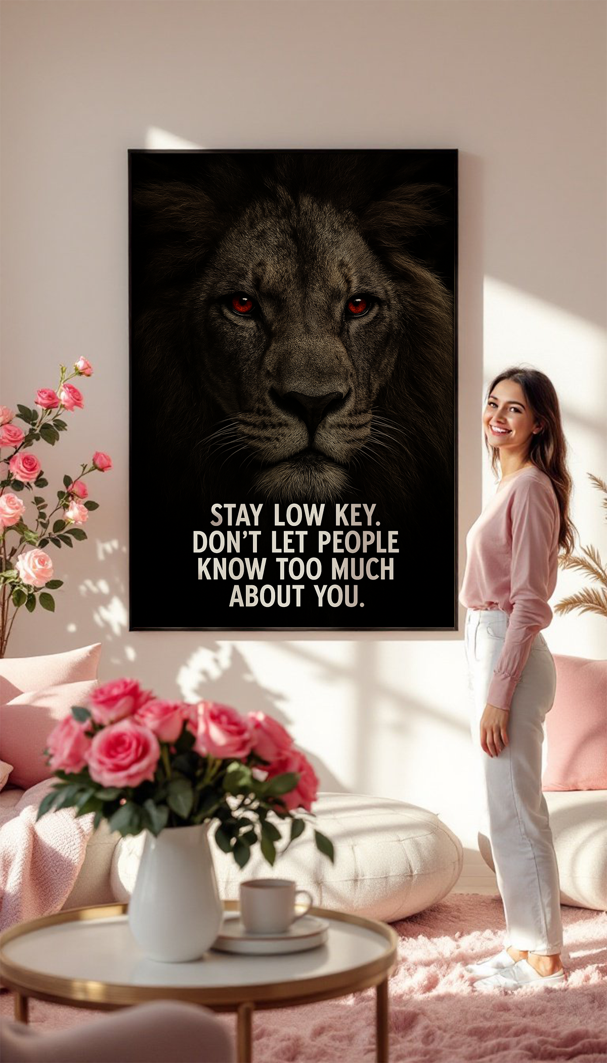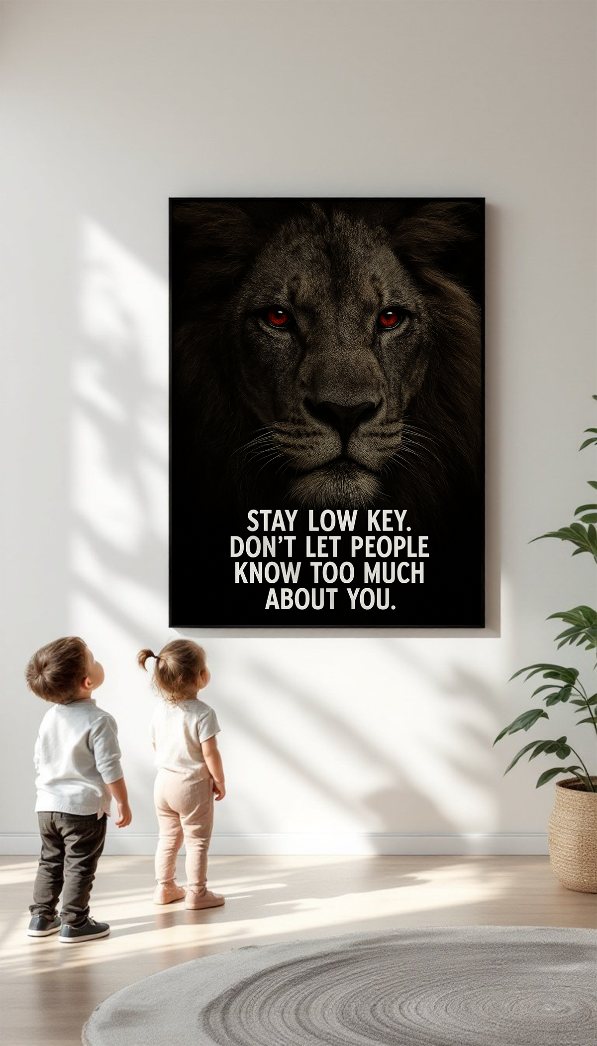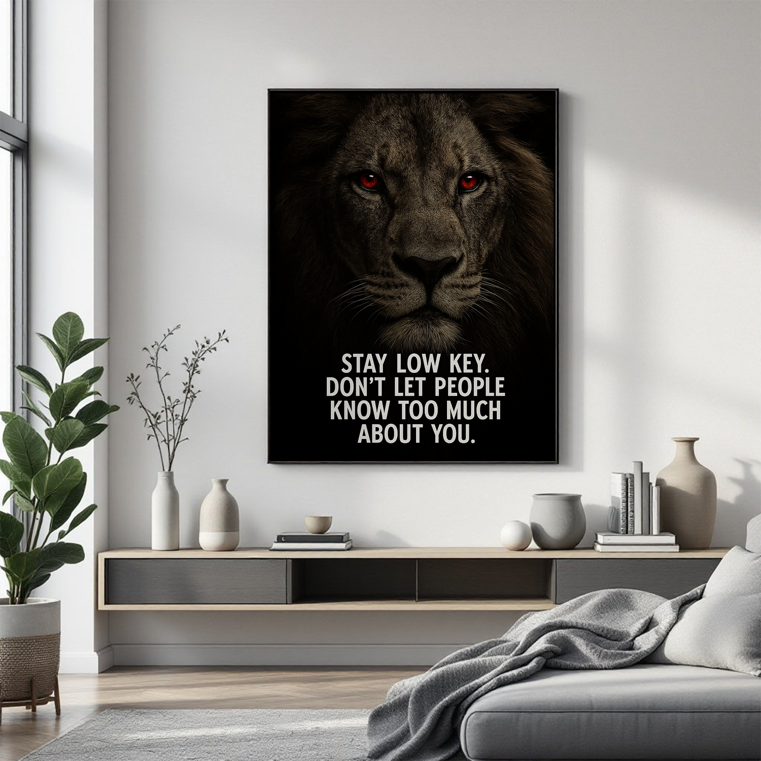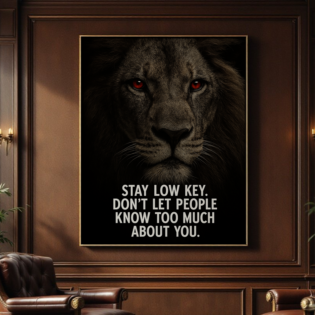 Stay Low Key. Don’t Let People Know Too Much About You – Motivational Lion Quote Wall Art
