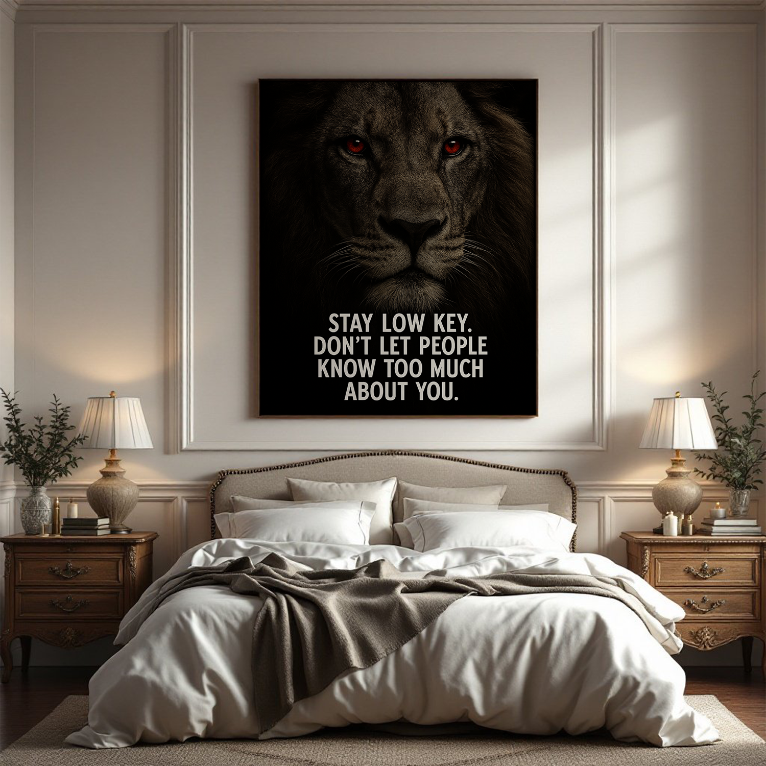 Bring home the "Stay Low Key" canvas and embody the mindset of the lion—observant, powerful, and quietly unstoppable.