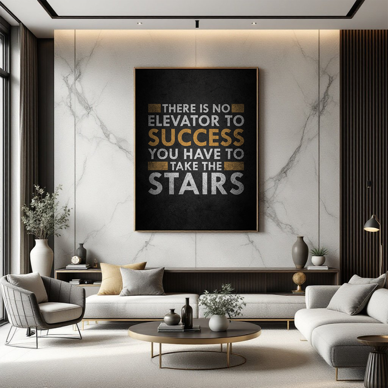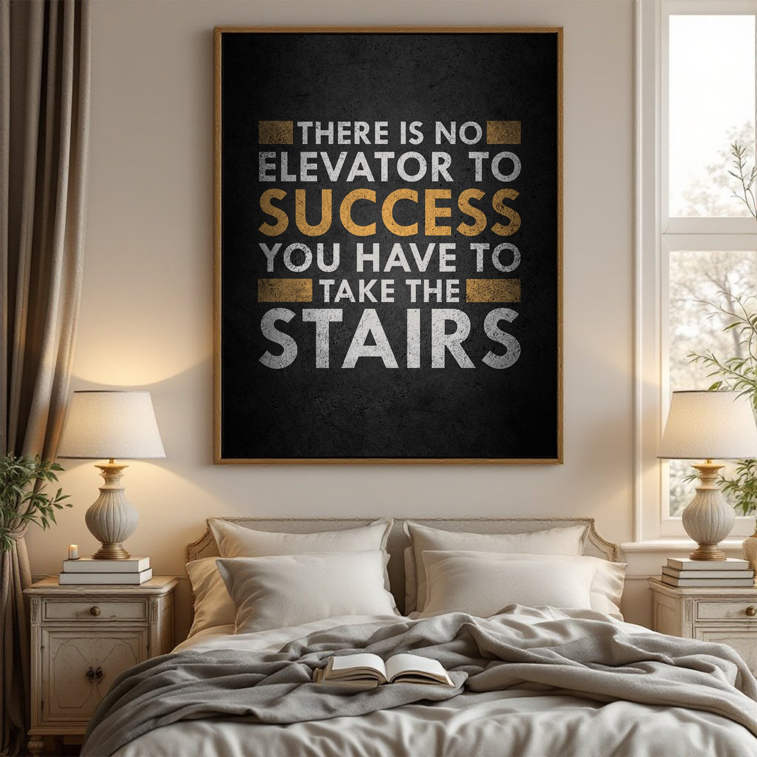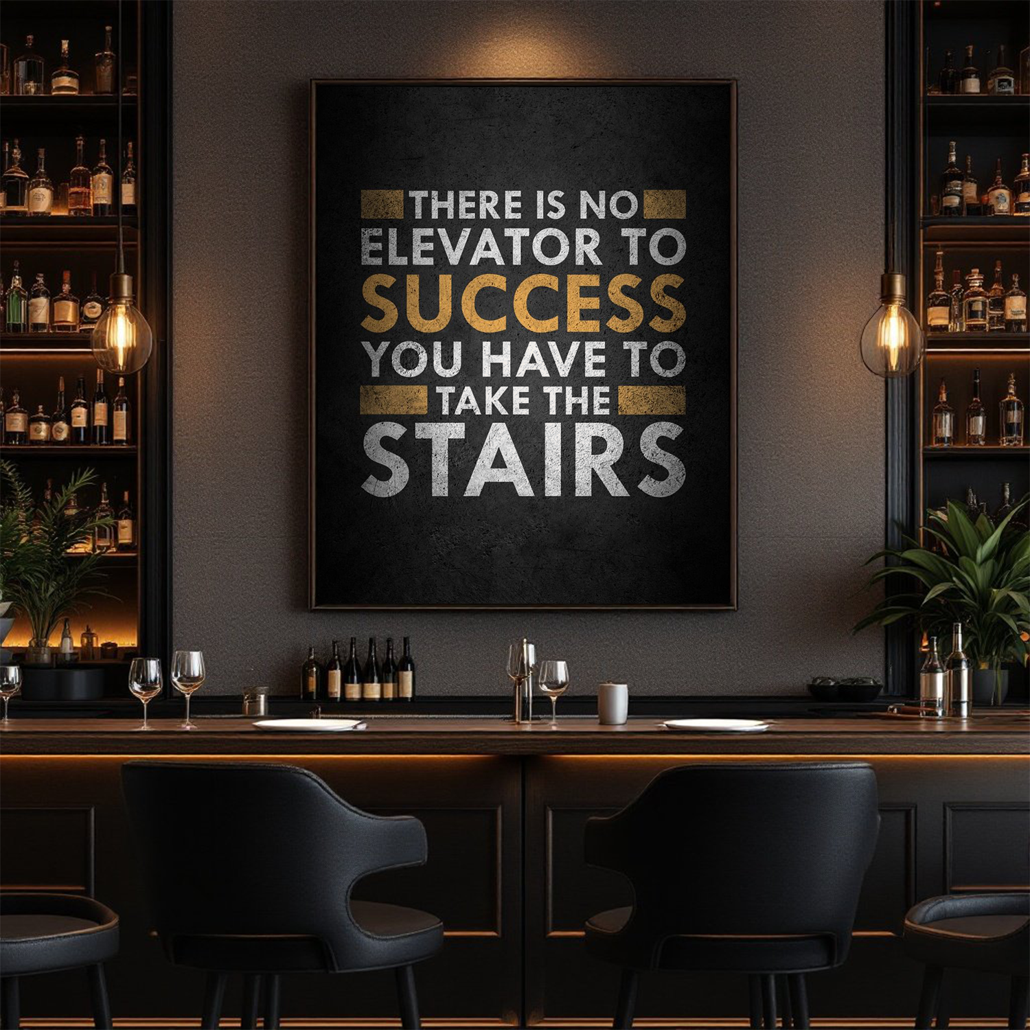 Add the "There Is No Elevator to Success" Motivational Wall Art Canvas to your collection today and let its powerful message inspire you to take every step toward success.